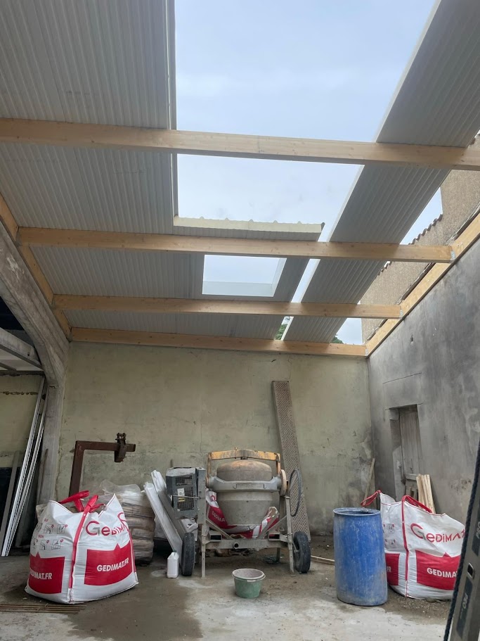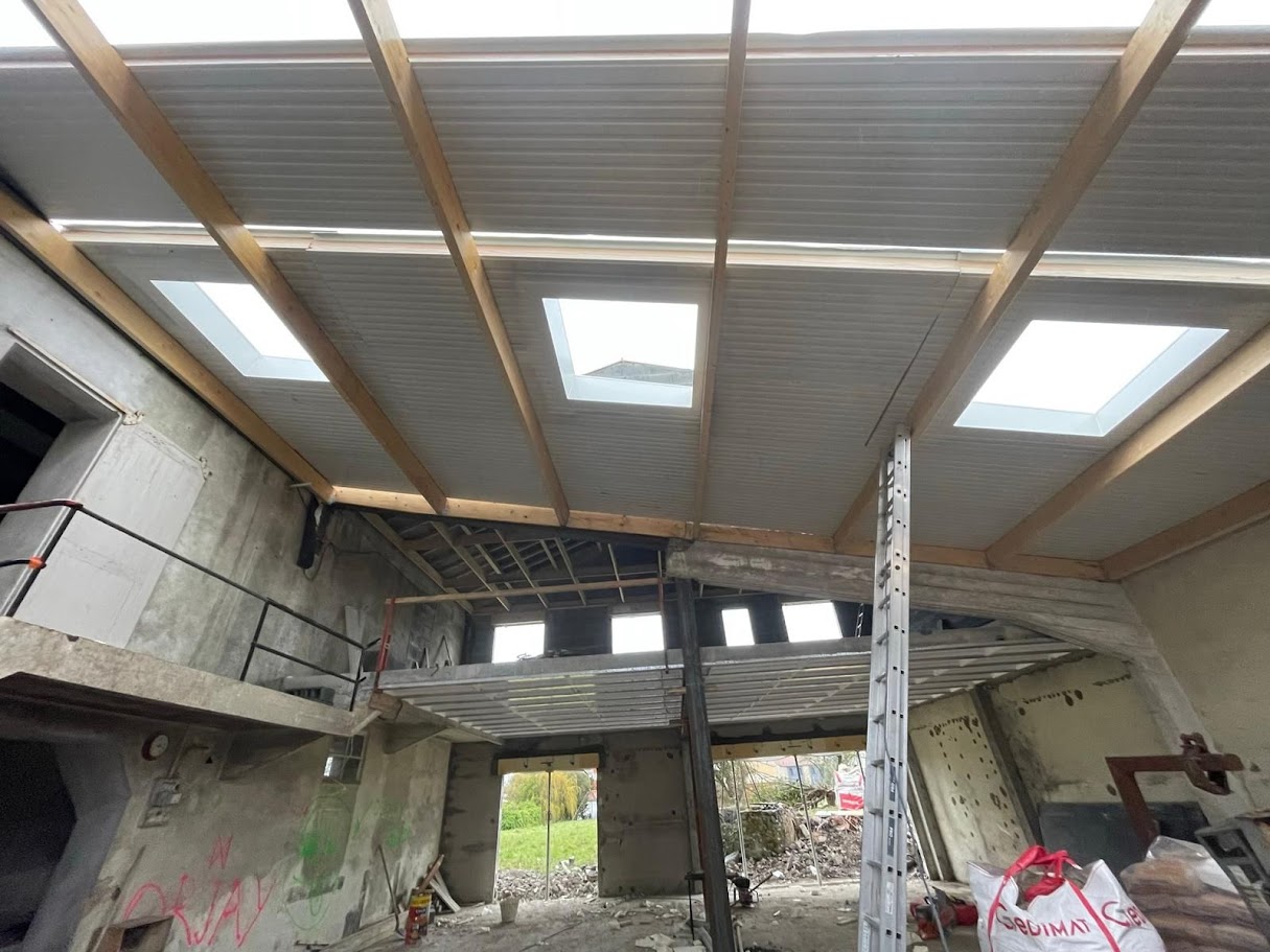 Création d’une couverture bac acier en 140 mm avec trois Velux