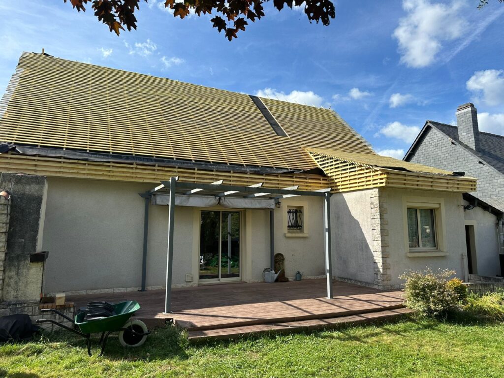 - Préparation de la charpente : Vérification de l’état des chevrons pour garantir une pose optimale.